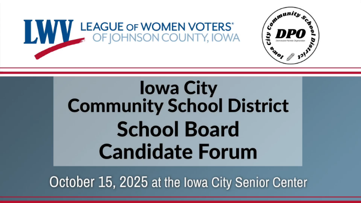 Navigate to League of Women Voters Candidate Forum: Iowa City Community School District School Board (Oct. 15, 2025)